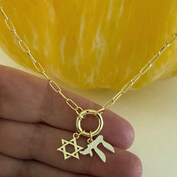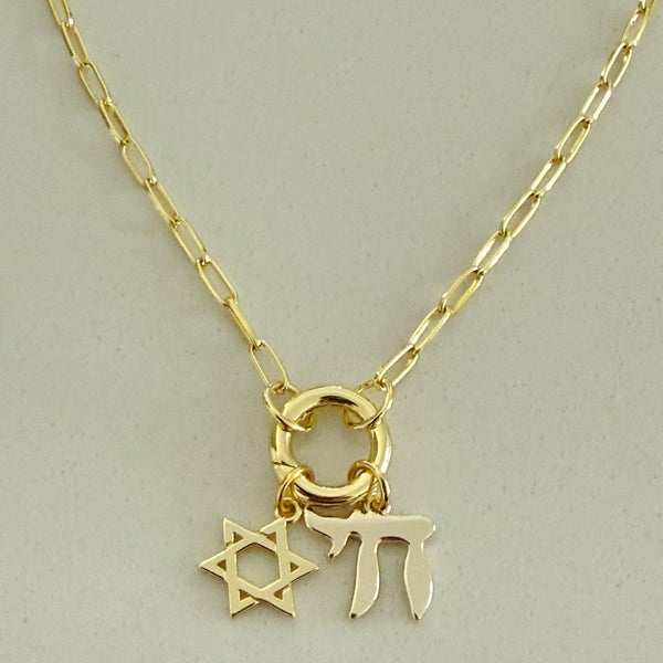 Chai & Star of David Paperclip Chain Necklace – Push Front Clasp
